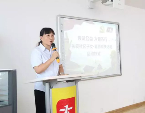 07月24日,由濟(jì)南市歷下區(qū)解放路街道黨工委聯(lián)合大智小班黨支部發(fā)起的“黨員公益 大智先行——關(guān)愛(ài)社區(qū)子女”暑假幫扶活動(dòng)啟動(dòng)儀式在大智控股集團(tuán)總部舉行。解放路街道青龍街社區(qū)居委會(huì)副主任張蕊等領(lǐng)導(dǎo),大智控股集團(tuán)黨委委員、濟(jì)南區(qū)域總校長(zhǎng)宋靜文,接受幫扶的社區(qū)家長(zhǎng)和孩子以及小班黨支部代表參加了儀式。