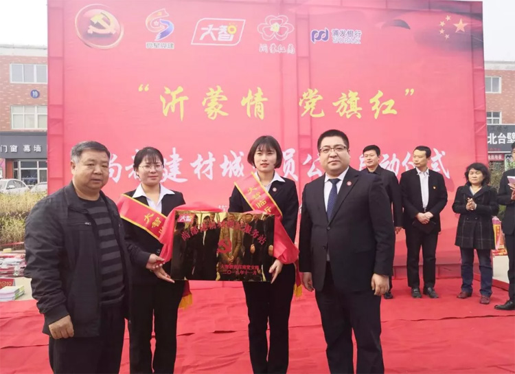 11月30日,臨沂市莒南縣市場監(jiān)督管理局、個體私營企業(yè)委員會與大智臨沂區(qū)域莒南黨支部聯(lián)合組織的黨員公益活動“沂蒙情 黨旗紅”啟動儀式在莒南尚都建材城隆重舉行。莒南市場監(jiān)督管理局副局長、機(jī)關(guān)黨委書記逯宗秋,市場監(jiān)督管理局公平交易局局長、個私黨委副書記盧勇成等領(lǐng)導(dǎo)及商城黨員、群眾代表參加活動。