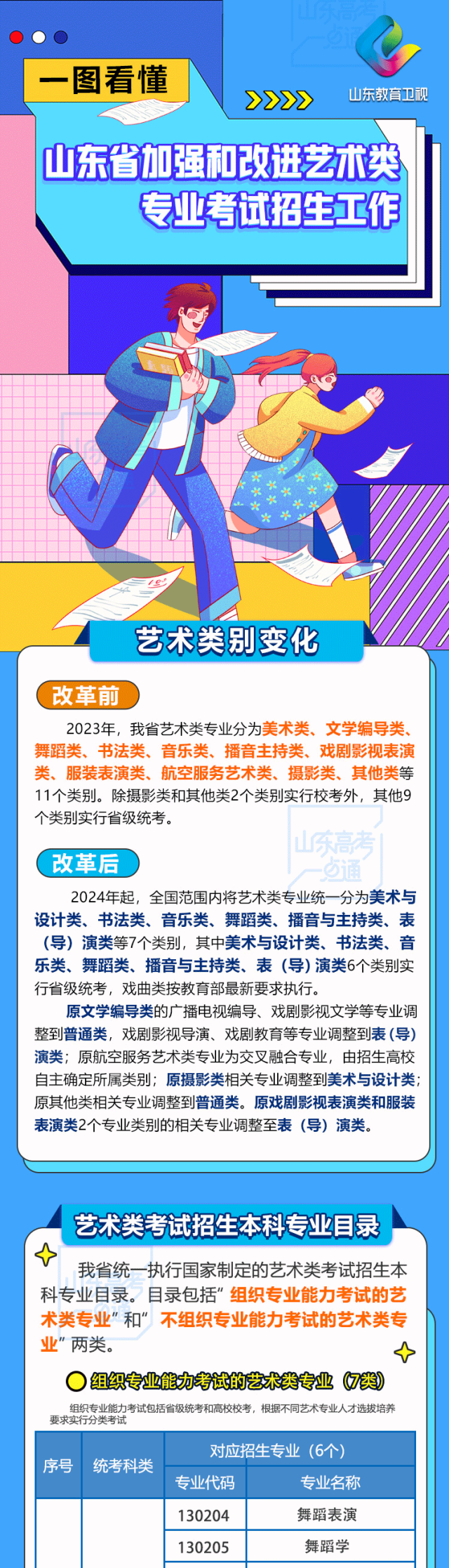 關(guān)于公布山東藝術(shù)學(xué)院藝術(shù)類校考專業(yè)的公告根據(jù)《教育部關(guān)于進(jìn)一步加強(qiáng)和改進(jìn)普通高等學(xué)校藝術(shù)類專業(yè)考試招生工作的指導(dǎo)意見(jiàn)》(教學(xué)〔2021〕3號(hào))等文件精神,經(jīng)上級(jí)批復(fù), 2024年,我校作曲與作曲技術(shù)理論(專業(yè)代碼:130203)、雕塑(專業(yè)代碼:130403)2個(gè)專業(yè),可在藝術(shù)類專業(yè)省級(jí)統(tǒng)考合格基礎(chǔ)上組織???。有關(guān)報(bào)考詳情請(qǐng)關(guān)注我校本科招生信息網(wǎng)站(https://zsbgs.sdca.edu.cn/)。此前,山東省教育招生考試院發(fā)布了《關(guān)于印發(fā)山東省進(jìn)一步加強(qiáng)和改進(jìn)普通高等學(xué)校藝術(shù)類專業(yè)考試招生工作實(shí)施方案的通知》和《山東省2024年普通高考報(bào)考提醒》,公布了2024年特殊類型招生政策變化和藝術(shù)類招生政策變化。2024年起,全國(guó)范圍內(nèi)將藝術(shù)類專業(yè)統(tǒng)一分為美術(shù)與設(shè)計(jì)類、書法類、音樂(lè)類、舞蹈類、播音與主持類、表(導(dǎo)) 演類等7個(gè)類別,其中美術(shù)與設(shè)計(jì)類、書法類、音樂(lè)類、舞蹈類、播音與主持類、表 (導(dǎo)) 演類6個(gè)類別實(shí)行省級(jí)統(tǒng)考,戲曲類按教育部最新要求執(zhí)行。