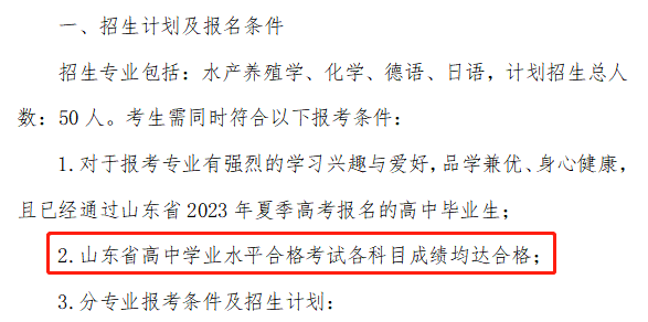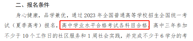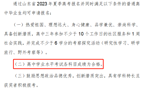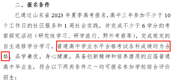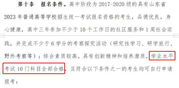 ?青島大學(xué):在2023年綜合評價(jià)招生的報(bào)名條件中有明確的規(guī)定,普通高中學(xué)業(yè)水平合格考試10門科目全部合格。