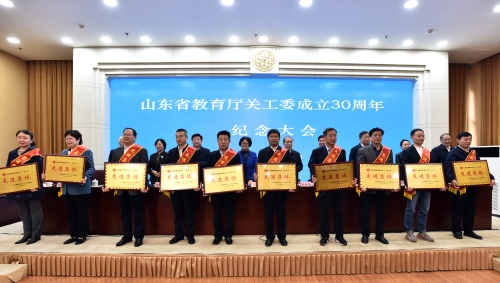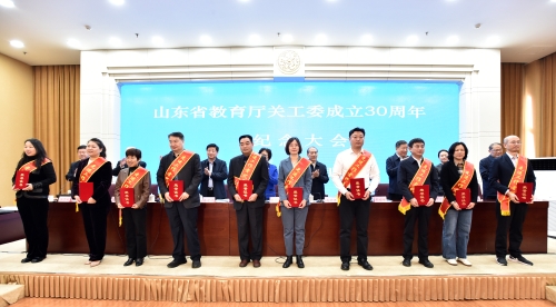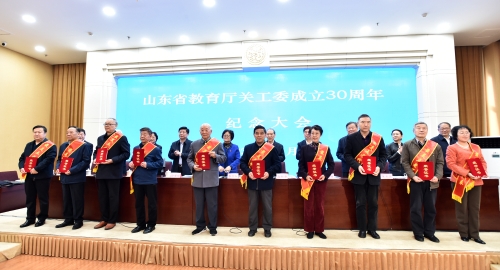 11月8日,山東省教育廳關(guān)工委成立30周年紀(jì)念大會在濟(jì)南舉行。大會在響亮的國歌聲中開幕。教育部關(guān)工委主任李衛(wèi)紅;省委原副書記,省人大常委會原黨組書記、常務(wù)副主任,省關(guān)工委主任高新亭;省人大常委會原秘書長,省關(guān)工委副主任兼秘書長孫建功;教育部關(guān)工委秘書長郝雅梅;省委教育工委副書記,省教育廳黨組副書記、副廳長邢順峰;省教育廳關(guān)工委主任黃琦等出席會議。省委教育工委委員、省教育廳黨組成員、副廳長張志剛主持會議。