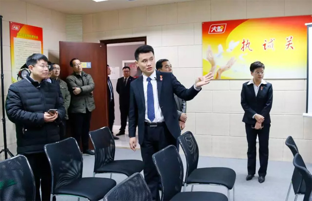 李開良一行首先參觀了大智控股集團總部,從整體上了解了大智的發(fā)展歷程與企業(yè)文化,重點了解了大智“智惠黨建一三九”工作模式以及黨建引領(lǐng)下的大智 “一帶一促”群團建設(shè)理念和“智惠+”群團建設(shè)模式。