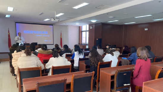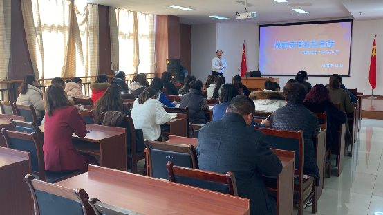 培訓(xùn)中,張朋從理論和實(shí)踐兩個層面對威海四中“低、慢、小、精”的課改理念和“三個中心”課改原則進(jìn)行深刻剖析:理論層面從基礎(chǔ)知識(鏈)角度、基礎(chǔ)題型(鏈)角度、基本能力(鏈)角度論證了“低、慢、小、精”課改理念的合理性和科學(xué)性;實(shí)踐層面基于威海四中學(xué)情和自身經(jīng)驗(yàn),從“基礎(chǔ)知識認(rèn)知弱、基本題型缺定法、基本能力憑感覺、語言態(tài)度糾偏少、寫作從無范文感”五大維度論證學(xué)?!皞湔n以學(xué)生為中心、上課以活動為中心、作業(yè)以雙基為中心”課改實(shí)踐原則的合理性和科學(xué)性。