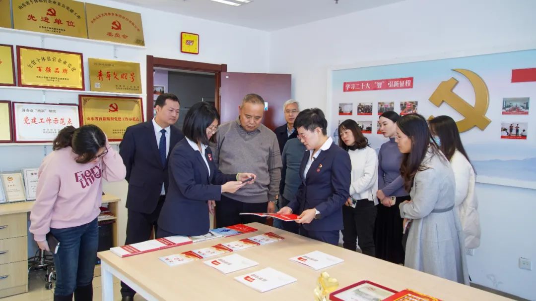王現(xiàn)芹帶領(lǐng)大家參觀(guān)了黨建長(zhǎng)廊,詳細(xì)介紹了大智黨委組織架構(gòu)、企業(yè)文化等相關(guān)情況,以及“智惠黨建一三九”黨建工作模式,黨建引領(lǐng)下的“一帶一促”群團(tuán)建設(shè)理念和“智惠+”群團(tuán)建設(shè)模式。大家對(duì)大智的黨建工作給予了高度評(píng)價(jià)。