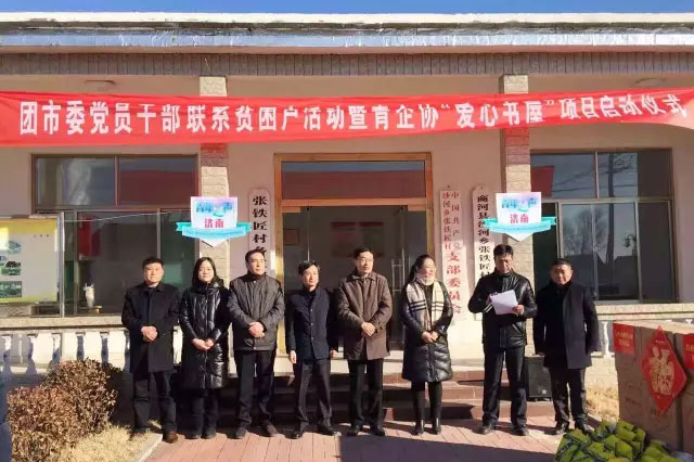 在張鐵匠村文化大院,團(tuán)市委副巡視員、市團(tuán)校校長(zhǎng)賈峪、張維東共同為青企協(xié)“愛(ài)心書(shū)屋”揭牌,一行人見(jiàn)證了青企協(xié)“愛(ài)心書(shū)屋”項(xiàng)目的正式啟動(dòng)。