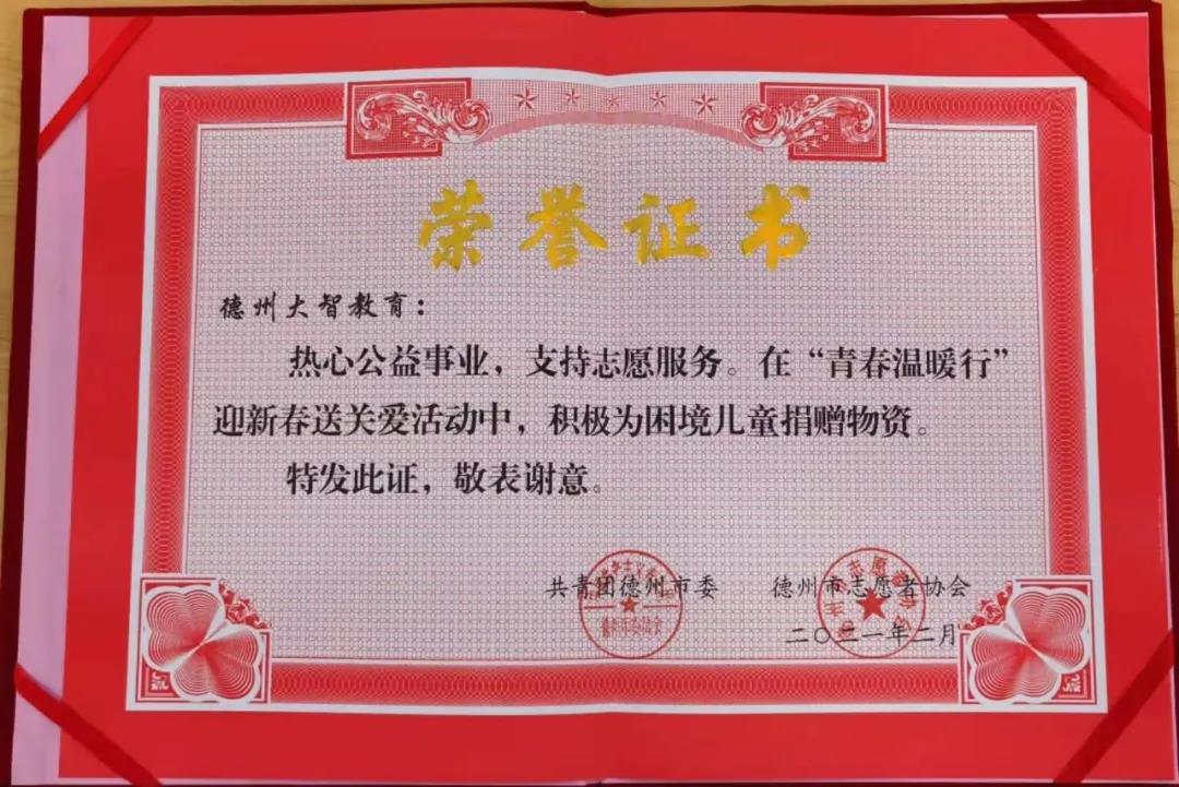 大智教育集團(tuán)各區(qū)域積極開(kāi)展智學(xué)智愛(ài)——"牽手關(guān)愛(ài)"千人志愿服務(wù)大行動(dòng),投身志愿服務(wù)事業(yè)。最近,大智臨沂區(qū)域以及德州區(qū)域在志愿服務(wù)工作上的付出也得到了上級(jí)團(tuán)組織的高度認(rèn)可。