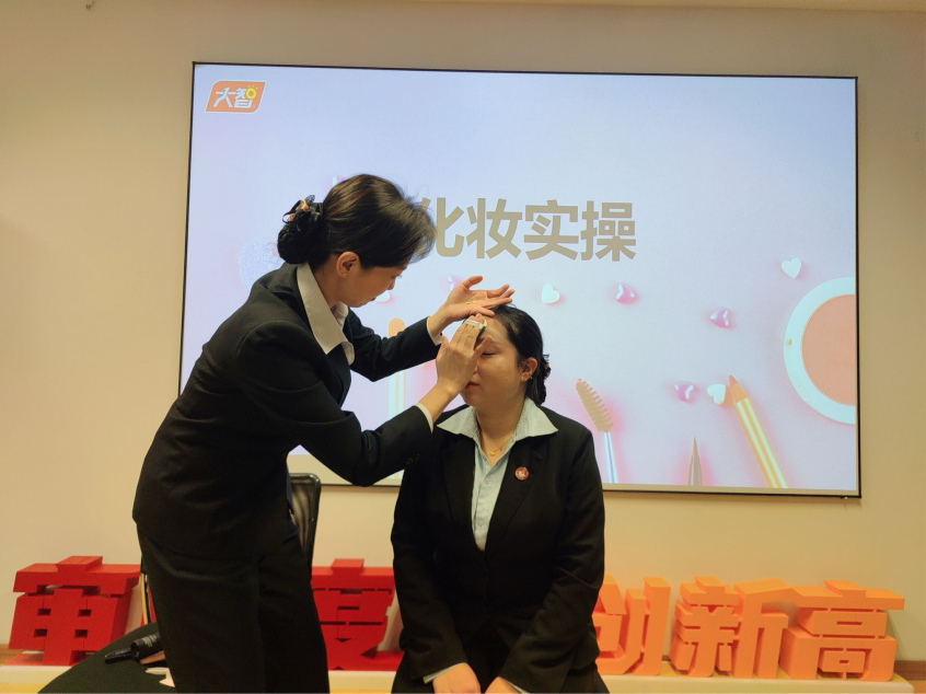 大智控股集團(tuán)市場部總監(jiān)陳婷婷針對學(xué)科導(dǎo)師的職業(yè)特性,傳授了快速高效的日常妝容打造技巧,包括底妝選擇、眼妝自然提亮、唇色搭配等實(shí)用知識。婷婷總監(jiān)提到:“化妝不僅是外在美的提升,更是對自我和他人的尊重。作為學(xué)科導(dǎo)師,妝容應(yīng)簡潔大方,既展示專業(yè)性,又拉近與學(xué)生的距離?!辈F(xiàn)場進(jìn)行化妝實(shí)操。