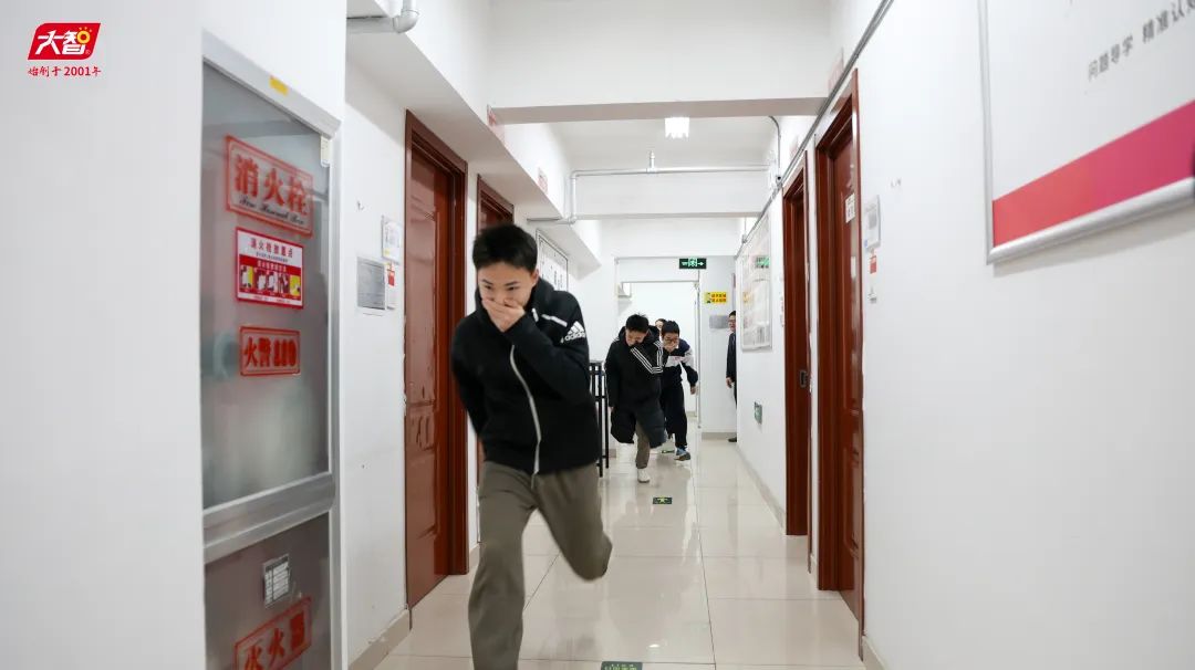 隨后,進(jìn)行安全逃生專項(xiàng)演練。全體師生聞令而動,依循預(yù)定消防疏散方案,有條不紊地展開撤離行動。大家手捂口鼻、彎腰低身、迅速、有序地進(jìn)行了撤離。全程秩序井然,無慌亂擁擠,嚴(yán)格遵循消防疏散規(guī)范,保障了撤離的安全高效。