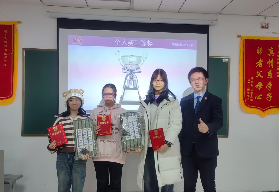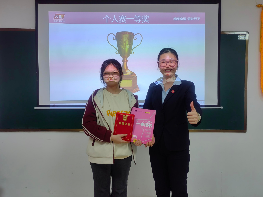 本屆“詞王爭(zhēng)霸賽聯(lián)賽”比賽過(guò)程緊張激烈,熱鬧非凡。個(gè)人賽有三關(guān),分別是“詞匯大風(fēng)車,我來(lái)?yè)尨鹬杂稍~匯和我來(lái)?yè)尨鹬畧?chǎng)景主題詞匯”三部分,考查學(xué)生們的詞匯熟練度,發(fā)音精準(zhǔn)度,用主題語(yǔ)境方法積累詞匯。團(tuán)隊(duì)賽有四關(guān),分別是“快速識(shí)詞、你劃我猜、合力拼詞和連詞造句”四部分,考查學(xué)生用正確運(yùn)用構(gòu)詞法積累詞匯,正確運(yùn)用詞匯表達(dá)觀點(diǎn)以及團(tuán)隊(duì)凝聚力。參賽選手們充分展示出了自身實(shí)力,團(tuán)隊(duì)凝聚力,積極活躍參與本次大賽,展示出來(lái)了英語(yǔ)的樂(lè)趣和魅力。經(jīng)過(guò)激烈角逐,9位選手分別榮獲本次個(gè)人賽一等獎(jiǎng)、二等獎(jiǎng)和三等獎(jiǎng)榮譽(yù)證書以及獎(jiǎng)品,三個(gè)團(tuán)隊(duì)分別獲得團(tuán)隊(duì)賽一等獎(jiǎng)、二等獎(jiǎng)和三等獎(jiǎng)的榮譽(yù)以及獎(jiǎng)品!