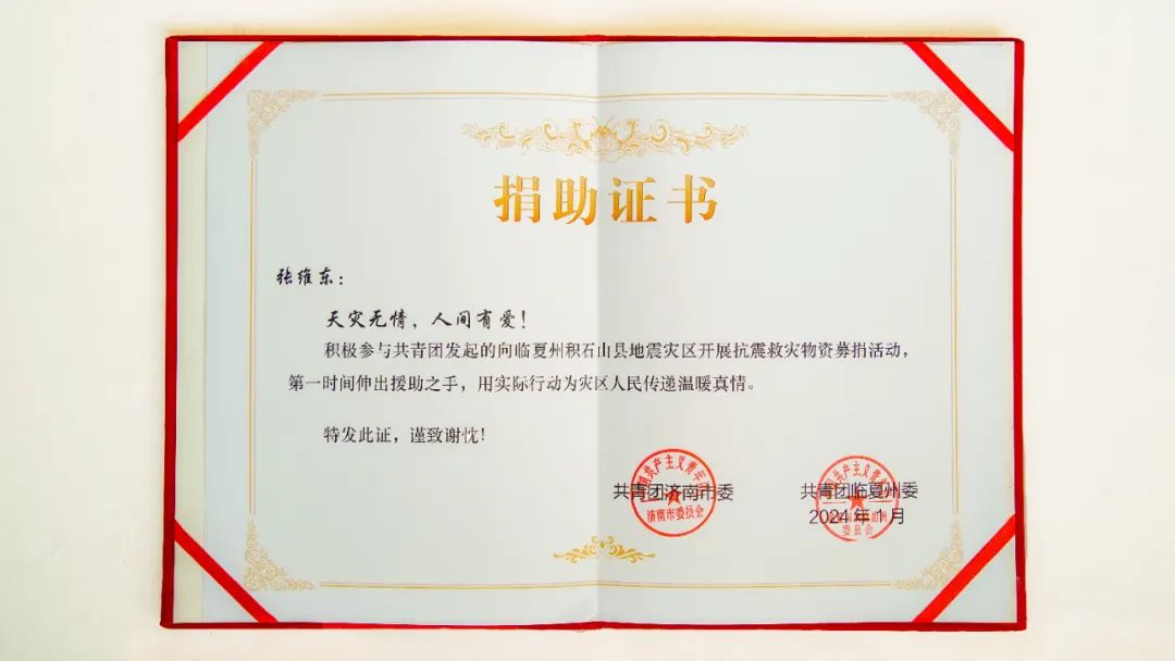 張維東獲評東西部協作和援助甘肅積石山縣地震災區(qū)工作作出積極貢獻的青年企業(yè)家