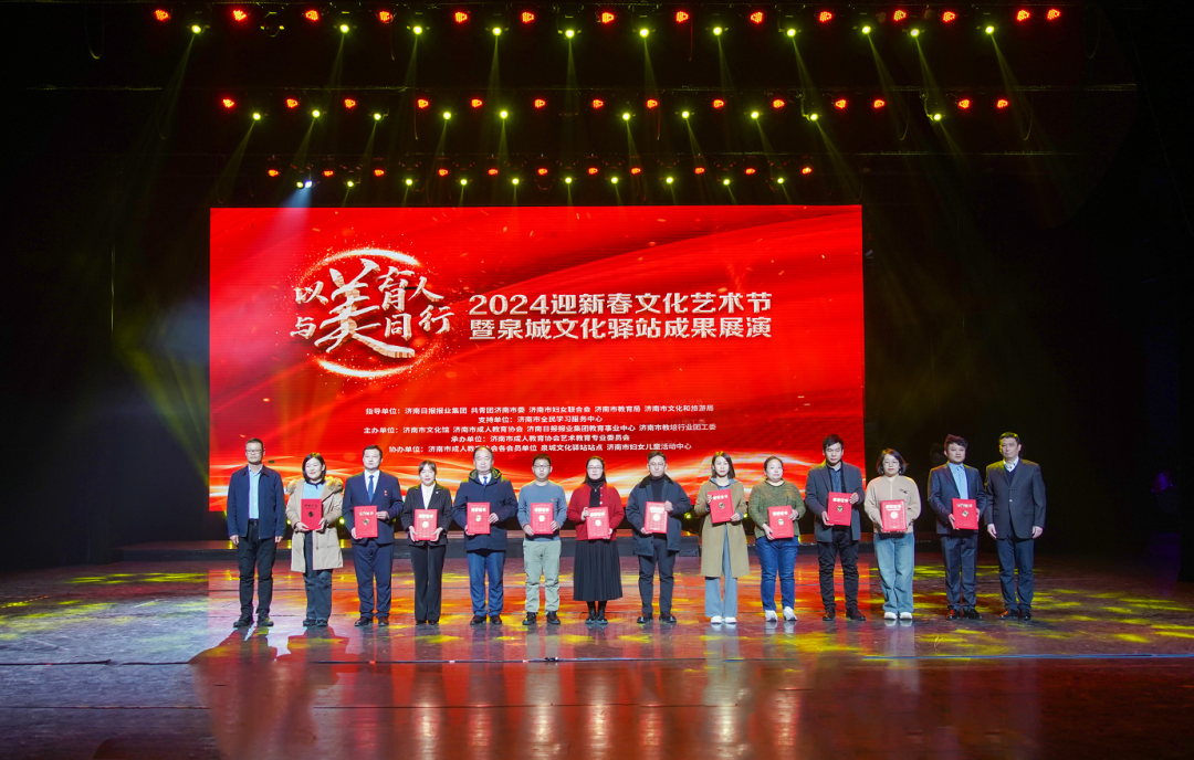 2月3日,由濟(jì)南市文化館、濟(jì)南市成人教育協(xié)會、濟(jì)南日報報業(yè)集團(tuán)教育事業(yè)中心、濟(jì)南市教培行業(yè)團(tuán)工委主辦,濟(jì)南市成人教育協(xié)會藝術(shù)教育專業(yè)委員會承辦的2024迎新春文化藝術(shù)節(jié)暨泉城文化驛站成果展演隆重舉行 。