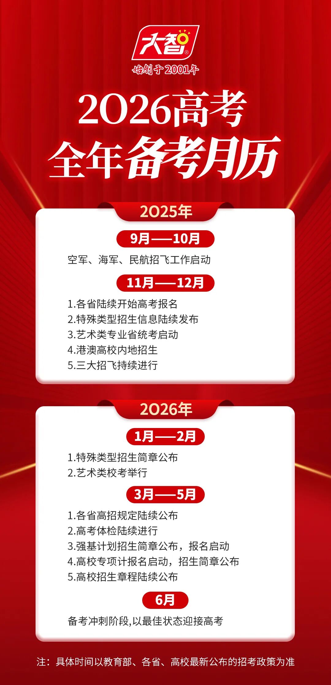 步入新學(xué)期,高考的戰(zhàn)鼓也悄然擂響,高三學(xué)年有哪些重要時(shí)間節(jié)點(diǎn)需要關(guān)注?2026年高考全年備考月歷來(lái)啦~