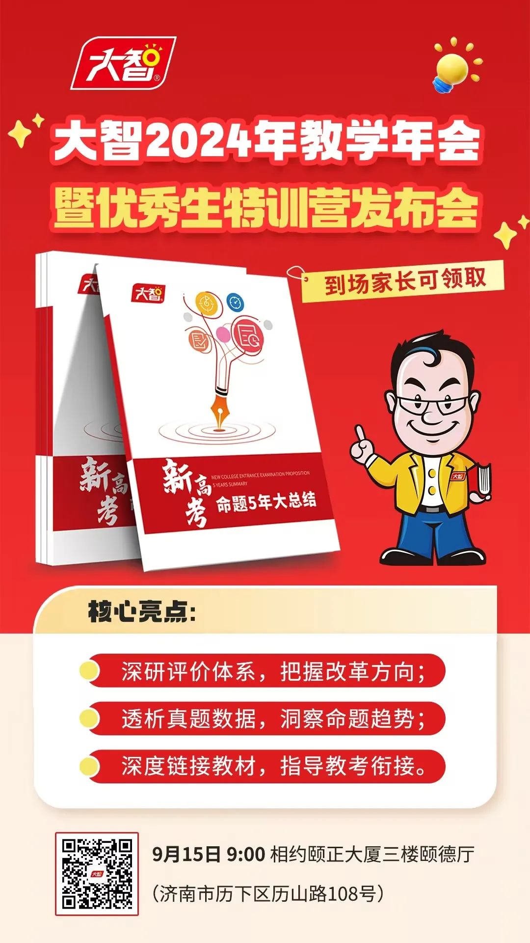 你們期盼已久的大智2024年教學(xué)年會終于要來了!為了幫助學(xué)生武裝新題型破題關(guān)鍵能力,培養(yǎng)學(xué)生研究性學(xué)習(xí)習(xí)慣,掌握答題核心要領(lǐng),攻克新高考新題...