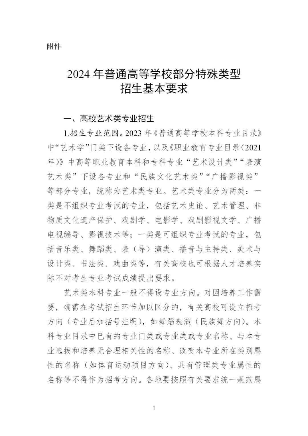 附件:2024年普通高等學(xué)校部分特殊類型招生基本要求