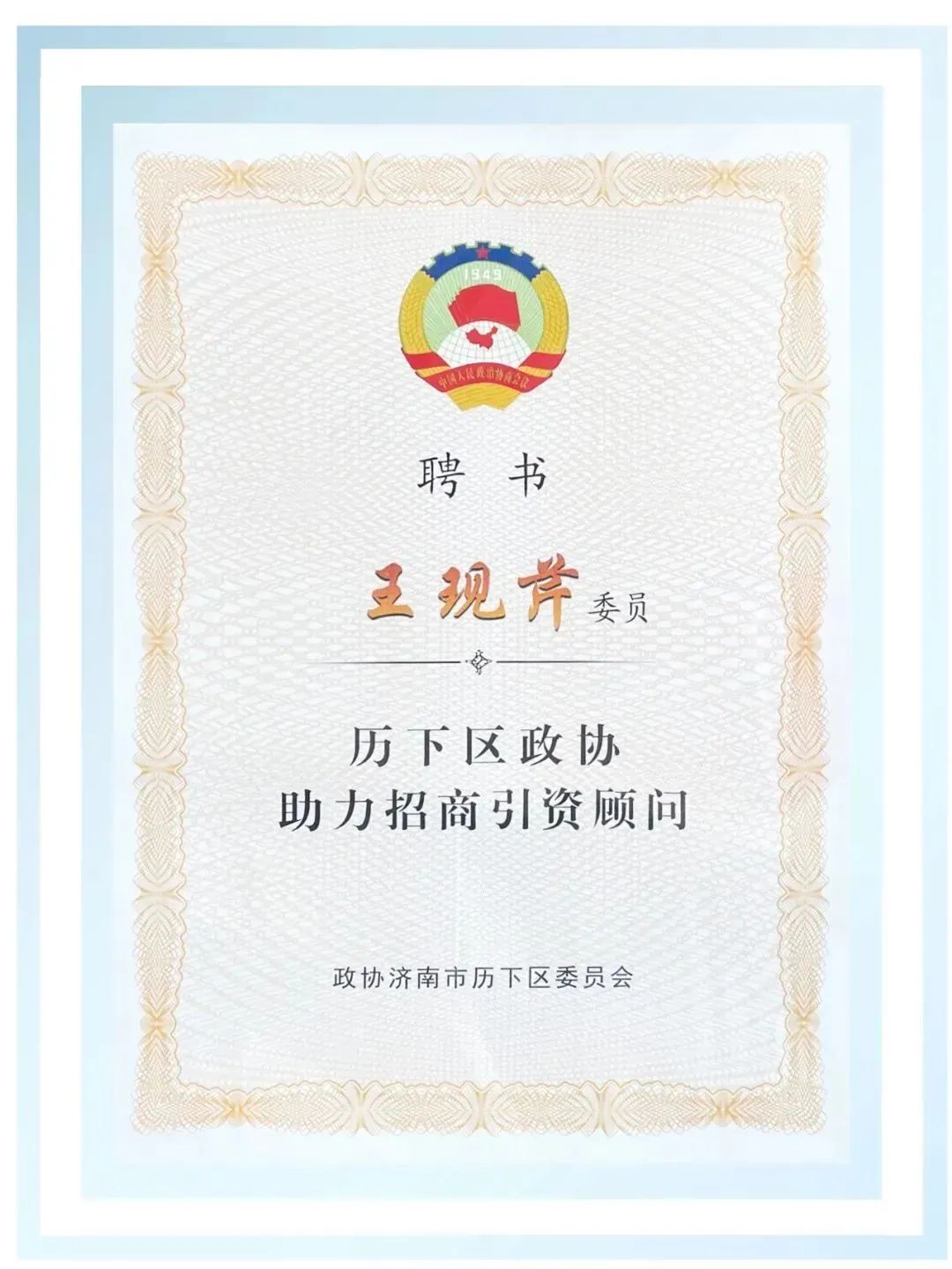 大智黨委書記王現(xiàn)芹被聘為“歷下區(qū)政協(xié)助力招商引資顧問(wèn)”