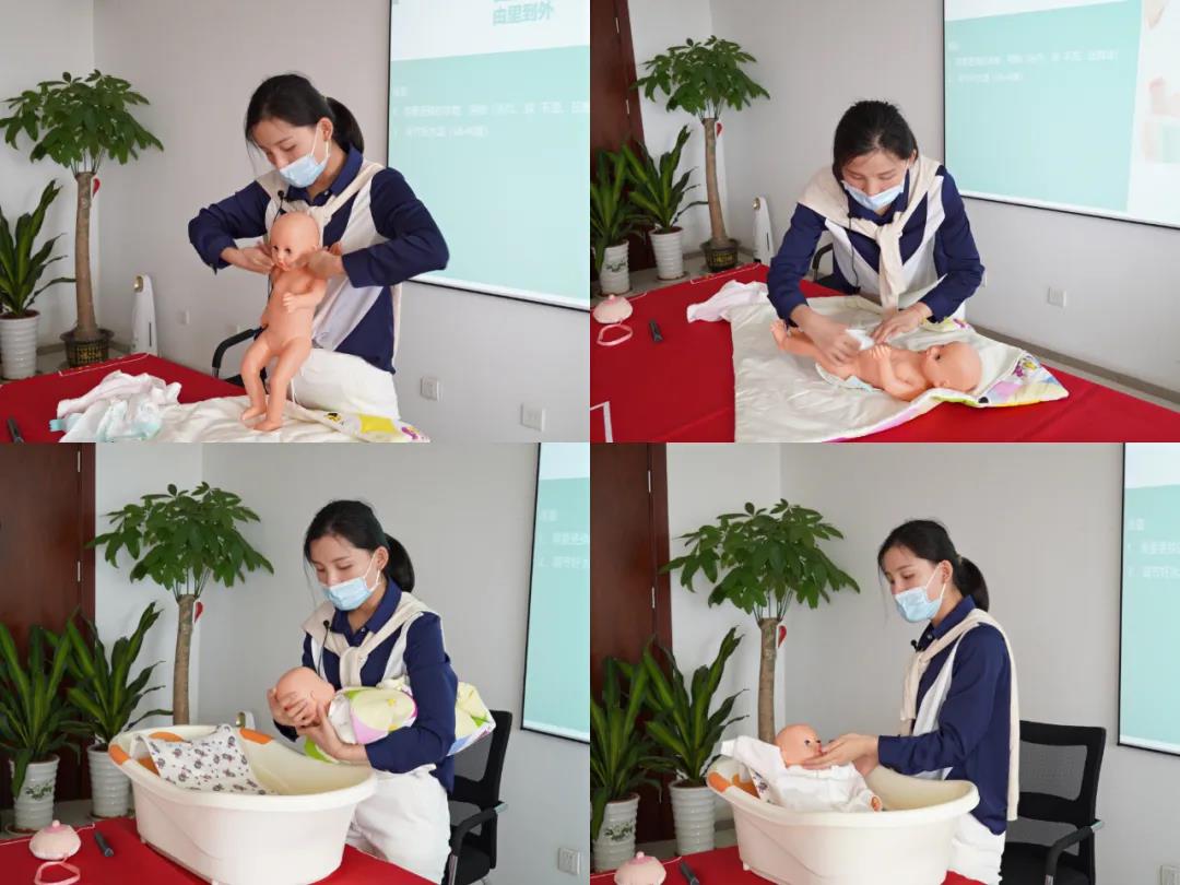 兩位老師分別從分娩前期準備以及后期的新生兒護理等方面進行了詳細講解,并在現(xiàn)場進行示范指導(dǎo)。