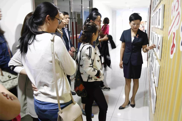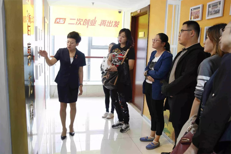 考察中,王現(xiàn)芹帶領(lǐng)大家參觀了大智教育集團黨建陣地,介紹了大智“智惠黨建一三九”工作模式、所開展的黨建系列活動、大智“一帶一促”群團建設(shè)理念和“智惠+”群團建設(shè)模式。