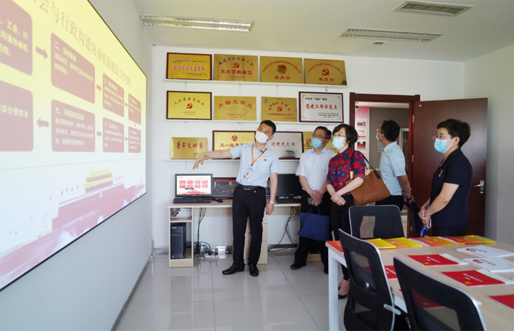 06月03日,山東省委組織部組織二處四級調(diào)研員朱曉峰、濟(jì)南市總工會副主席劉祖亭及省調(diào)研組、濟(jì)南市總工會的相關(guān)同志蒞臨大智調(diào)研企業(yè)民主管理情況。大智控股集團(tuán)黨委書記王現(xiàn)芹、工會主席常廣成熱情接待。