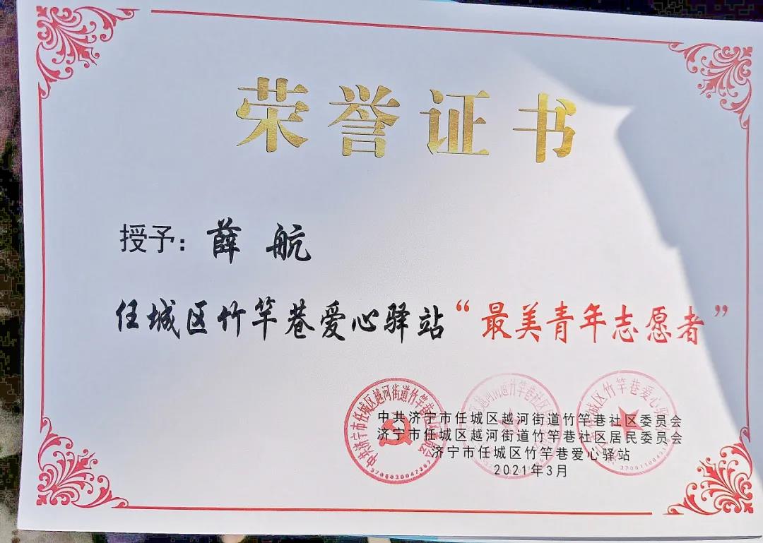 濟(jì)寧區(qū)域團(tuán)支部聯(lián)合竹竿巷社區(qū)、蔣林社區(qū)、濟(jì)寧市雷鋒紀(jì)念館、濟(jì)寧市黨章石刻館、濟(jì)寧市青年志愿者協(xié)會(huì)開展“慶建黨百年,弘揚(yáng)雷鋒精神”公益活動(dòng),南池分校市場專員薛航家人被越河街道評選為“優(yōu)秀青年志愿者。”